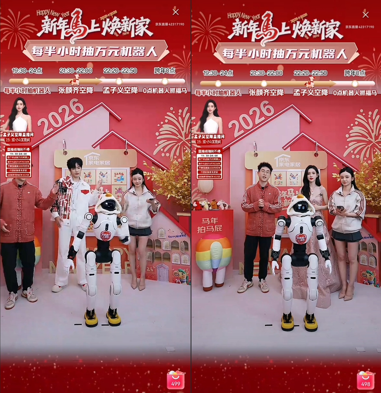 在京東直播間中,智元遠(yuǎn)征A2和孟子義唱歌接龍,一不小心唱歌“走調(diào)”,在線展示高情商;與張顏齊一起送上川味兒祝福,連詞成句、即興說(shuō)唱、夸夸老己……樣樣能行。除了展示語(yǔ)言實(shí)力,遠(yuǎn)征A2還現(xiàn)場(chǎng)撰寫了“馬上有錢”、“抓馬”等新春祝福送給大家。靈犀X2則和孟子義、張顏齊斗舞,把直播間的氣氛拉滿。