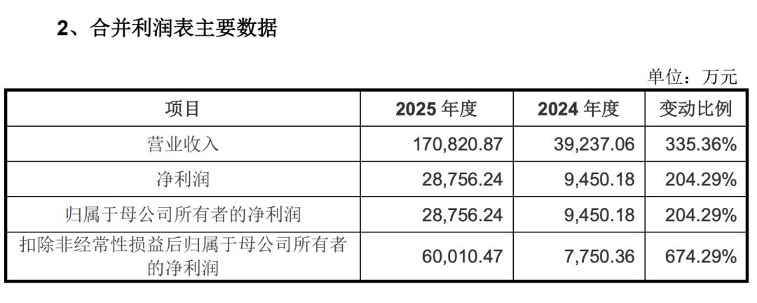 宇樹(shù)科技披露的招股說(shuō)明書(shū)顯示,2025年,宇樹(shù)科技實(shí)現(xiàn)營(yíng)業(yè)收入17.08億元,同比增長(zhǎng)335.36%;實(shí)現(xiàn)扣非凈利潤(rùn)超6億元,同比增長(zhǎng)674.29%,主要原因?yàn)楫?dāng)期產(chǎn)品銷量快速增長(zhǎng)。