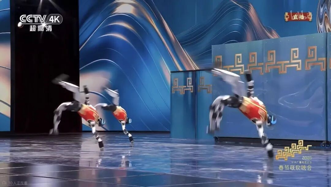 宇樹機器人在表演單腿連續(xù)空翻
