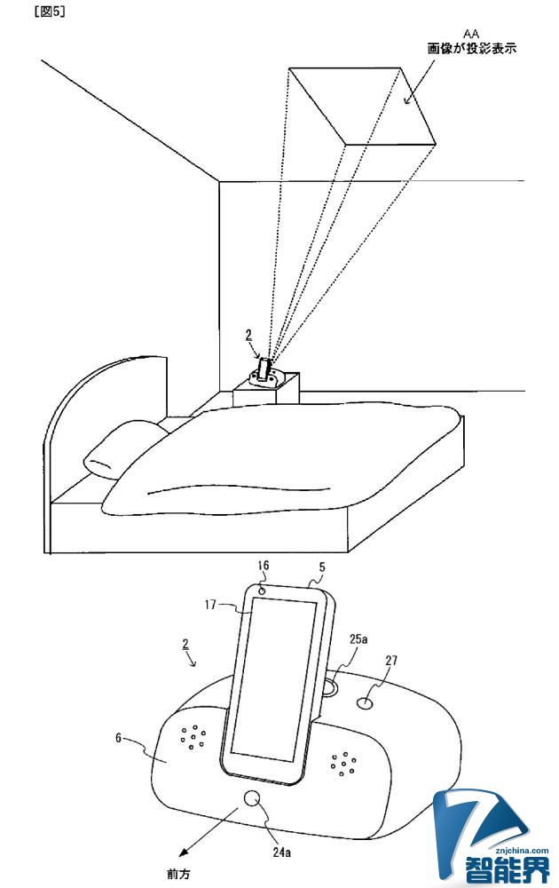 根據(jù)專利的描述文件來看,這款設(shè)備的便攜式終端可以探測傳感器信息以判斷用戶情緒。傳感器信息可以是麥克風(fēng)探測到的聲音信息,也可以是攝像頭捕捉到的影像信息。這個信息處理系統(tǒng)根據(jù)傳感器信息來判斷用戶的情緒。便攜式終端處于待機狀態(tài)時會探測傳感器信息。而投影設(shè)備會將評估出的用戶情緒及睡眠質(zhì)量得分投影到墻壁或天花板上。
