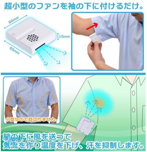 在高溫下,最沒有辦法避免的事情就是出汗,你總會有離開開著空調(diào)的房間的時(shí)候,而夏天暴露在外面的氣溫環(huán)境中,滿頭汗那是分分鐘的事。而且人的身體存在著若干隱蔽的死角,很容易成為分泌物聚集的地方,比如說腋下。汗液留在腋下所產(chǎn)生的體味恐怕沒有人會喜歡,這也正是香體露存在的原因。然而在不怎么習(xí)慣使用它的東方社會里,比如說日本,就有他們奇怪的想法——使用小體積風(fēng)扇把腋下吹干。