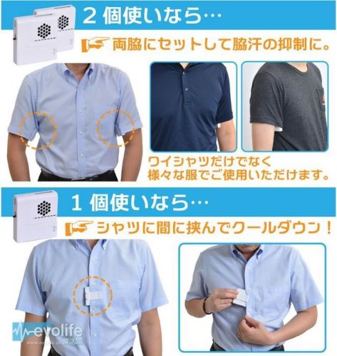 雖然不知道這個(gè)極其精巧的腋下風(fēng)扇由誰生存制作,目前它出現(xiàn)在日本的一個(gè)在線商店Thanko里接受預(yù)訂。它的用法也十分簡單易懂:夾在短袖T恤袖口的內(nèi)側(cè),讓風(fēng)口對著腋下吹,而且還有三檔風(fēng)力可調(diào)。風(fēng)扇由兩粒7號電池驅(qū)動(dòng)電力,工作時(shí)間在5~9小時(shí)不等,不過人們也可以通過手機(jī)或是充電寶通過它的microUSB接口進(jìn)行供電。在一些十分擁擠的場合比如說沒空調(diào)的通勤電車?yán)?,像這樣的微型納涼裝置還挺受歡迎。
