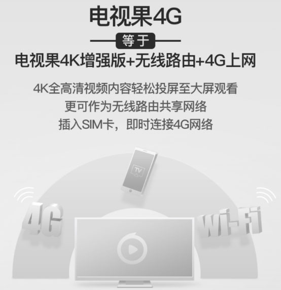 為什么選擇電視果4G?因為4G支持7模16頻Nano SIM,除了在家享受,你也能帶上電視果出差或者外出,外出電視果變身無線路由,可以發(fā)射WIFi網(wǎng)絡(luò)讓你的筆記本保持高速聯(lián)網(wǎng)狀態(tài),不錯過任何商業(yè)機(jī)會,也節(jié)省了一大筆購買帶sim卡槽筆記本的費用,同時出差在外,在酒店可以用電視果4G接通房間電視,讓娛樂伴隨你的旅途,讓娛樂不斷,快樂無限。
