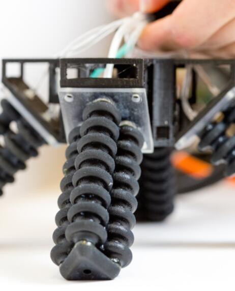 Dylan Drotman 與 Tolley 實(shí)驗(yàn)室的學(xué)生一起完成了軟體機(jī)器人的腿部設(shè)計(jì),利用 3D 打印機(jī),你可以一次性完成腿部的打印。事實(shí)上,你甚至可以輕易的將整個(gè)四足機(jī)器人打印出來(lái)。