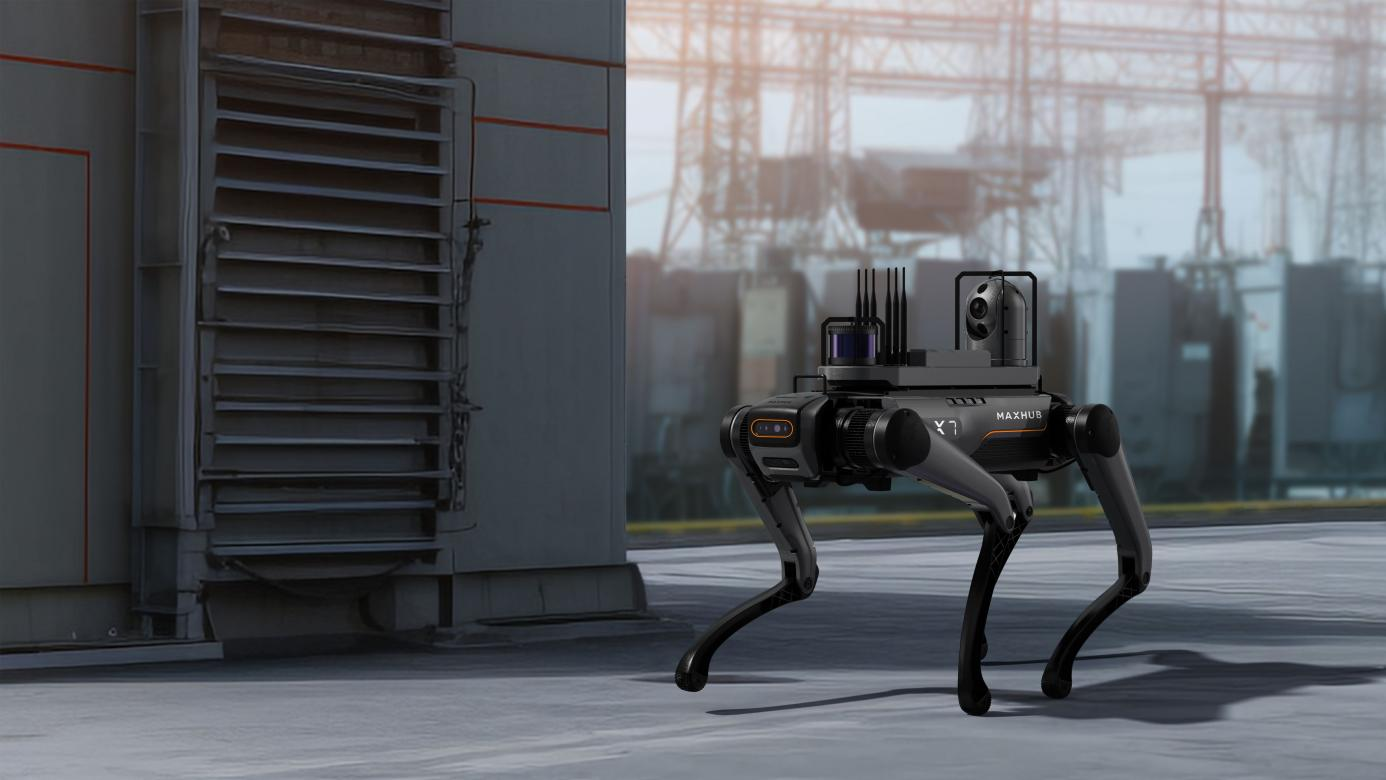 以工業(yè)級四足機器人“MAXHUB X7”為例,該產(chǎn)品已廣泛應(yīng)用于巡檢、安防、應(yīng)急等領(lǐng)域,展現(xiàn)出色的環(huán)境適應(yīng)性與任務(wù)執(zhí)行能力。MAXHUB X7具備多地形高通過性,可穩(wěn)定攀越35°陡坡、應(yīng)對臺階、沙石、草地等復(fù)雜環(huán)境。IP66防護等級使其無懼暴雨、粉塵和-20℃至55℃極端溫度,支持全天候作業(yè)。通過搭載可見光+紅外熱成像雙攝像頭云臺、氣體傳感器、機械臂等模塊,MAXHUB X7能替代人工在電力巡檢、工業(yè)安防、災(zāi)害救援等高風(fēng)險場景中執(zhí)行任務(wù)。目前,MAXHUB X7已成功應(yīng)用于變電站、乳業(yè)工廠等多個真實場景,展現(xiàn)出極高的實用價值與可靠性。