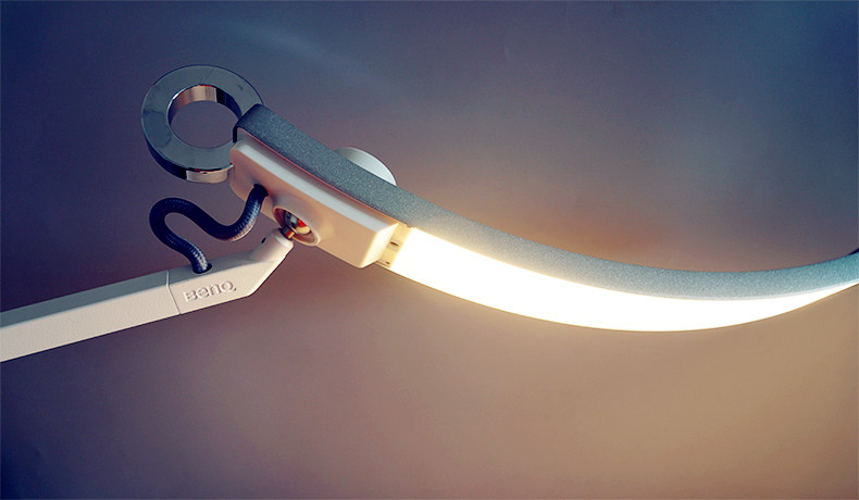 明基WiT的燈頭可以隨意的扭轉(zhuǎn),燈臂也可以隨意地折疊延伸。這樣的設計能夠使用戶更大限度的使用臺燈。