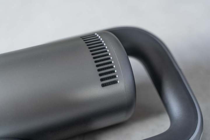 ▲我們仔細看手柄處,它的設計非常的人性化,有兩處可以握持的地方。270度的雙向設計,我們可以握在上方,也可以握在后部。能夠在各種手勢姿勢中切換。尤其是在垂直的吸塵,后方握持更加的舒適。