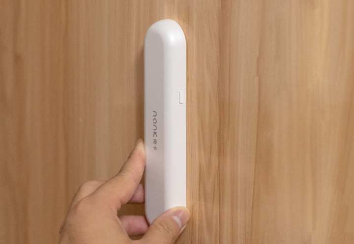 南卡Zzzz枕中寶的外形挺像我家里的電視遙控器,條形的設計。整個的形狀偏向于長條梯形,整個正面的外殼是塑料的材質,相對于普通的塑料來說,材質表面也煥發(fā)著金光閃閃銀粉。在產(chǎn)品的背面是采用了硅膠的材質,并上面并印了它的電壓和容量以及它的名稱。