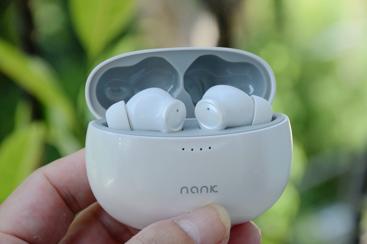 南卡A2充電倉尺寸不大,純白色外殼,橢圓造型,眼觀猶如珍珠色澤,上手柔滑親膚。