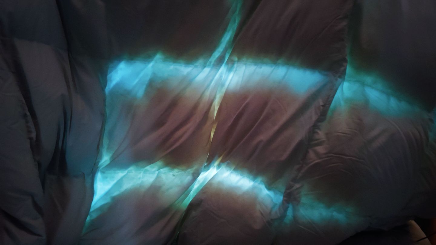 采用的自動充絨工藝,利用了全自動充絨機,確保絨料填充標準均勻,同時被子的3D立體空氣倉設(shè)計,讓羽絨均勻分布在被子里,避免線跡處絨少而造成高低不平現(xiàn)象,有效增加被子的保暖性和蓬松度。我利用手電筒,也查看了整個被子的充絨情況,確實還是相當不錯的,十分的均勻,品控過關(guān)。