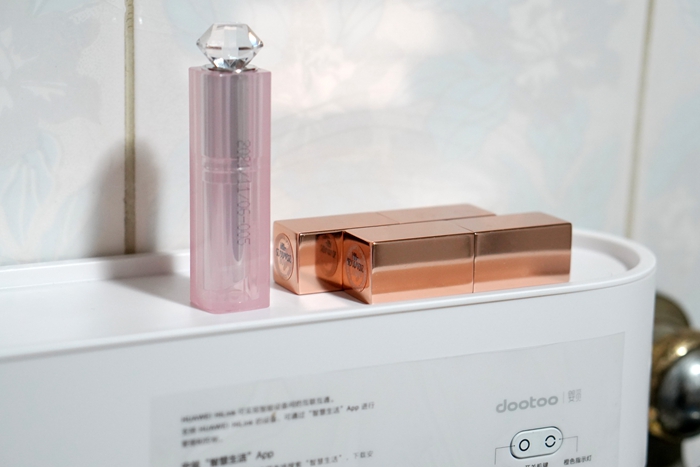 杯架的蓋子可以打開(kāi),里面空間比較大,兩個(gè)漱口杯就是放在里面一起寄過(guò)來(lái)的,平時(shí)用來(lái)收納一下口紅一類(lèi)的小物件還是非常實(shí)用的。同時(shí)電池倉(cāng)也設(shè)計(jì)在這里,采用電池供電比插電要安全很多。