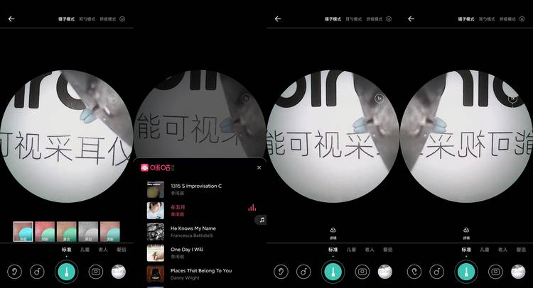 APP中還可以設(shè)置鑷子模式、耳勺模式、擠痘模式、口腔模式,還可以選擇用戶模式:標(biāo)準(zhǔn)、兒童、老人、伴侶。并且可以設(shè)置濾鏡、左右耳、播放音樂,拍攝等功能,十分強(qiáng)大。