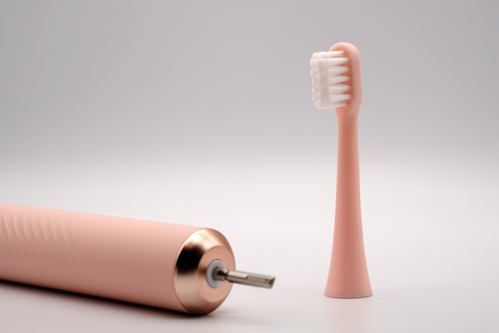牙刷前端為304食品級(jí)不銹鋼動(dòng)力輸出軸,和機(jī)身接觸部分有柔性防水膠圈,同時(shí)整個(gè)機(jī)身具備IPX7級(jí)防水能力,日常用水清潔機(jī)身也是可以的。