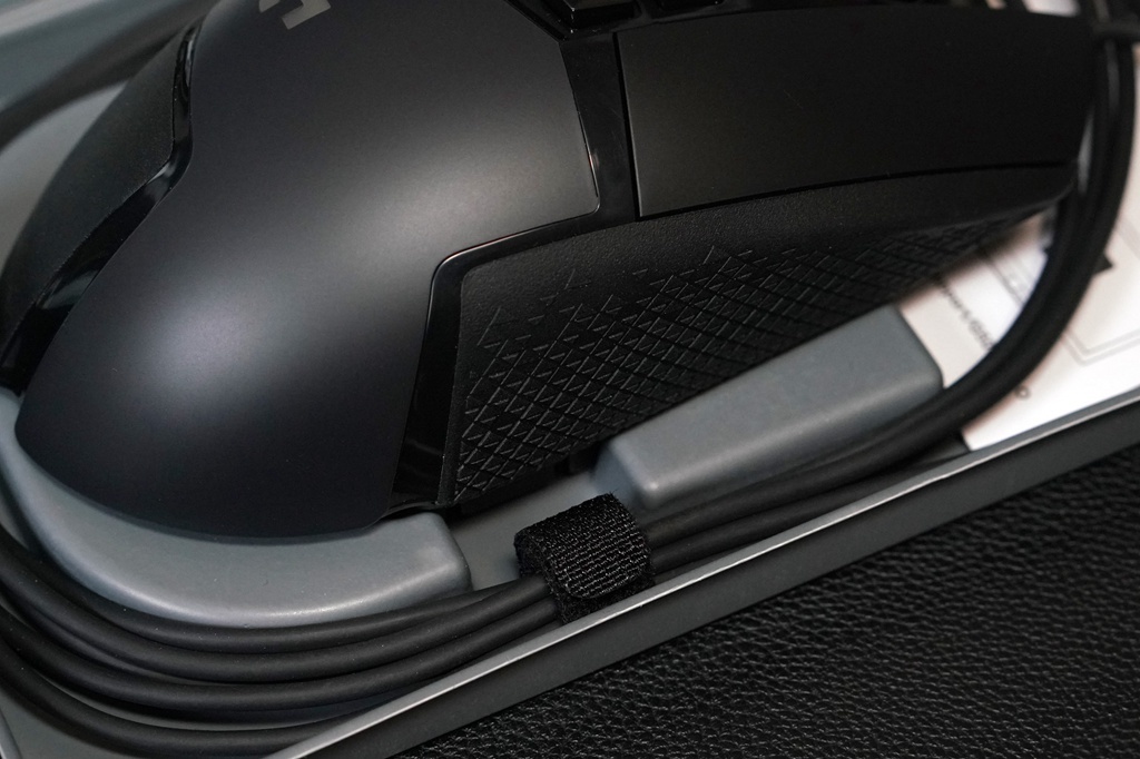 線材方面,羅技G502 HERO主宰者采用2米長線材,整體較軟,對鼠標幾乎沒有束縛感,并且配備了理線帶,避免線材打結纏繞,方便日常收納使用。