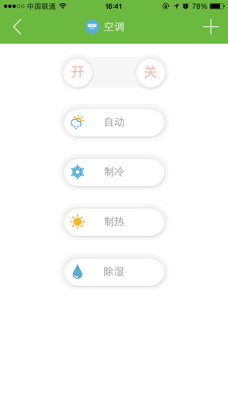 筆者使用的是空調(diào)遙控器,在APP里發(fā)現(xiàn)空調(diào)遙控器界面中只有5個(gè)按鈕,沒有溫度加減,相較于普通的空調(diào)遙控器來說更加簡單明了。不過點(diǎn)開右上角的加號(hào)之后,會(huì)看到一些選項(xiàng),簡潔實(shí)用可能是工程師向大家傳遞的一個(gè)想法吧。