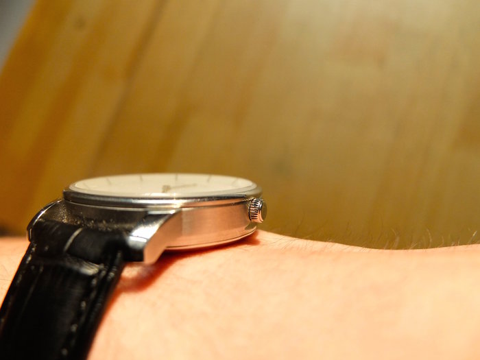 同樣采用了41mm的表盤其實并不比Paick大多少,但是因為表框做的很薄,實際上表盤更大一些,女生戴起來就不那么合適,我拿給一個年輕女同事佩戴,被笑說好像偷了爸爸的表。雖然在官方的宣傳圖中女生佩戴起來也很好看,不過我還是建議如果女生想做一些搭配,讓飾品突出一些,還是要考慮到整體效果以及選什么顏色。另外inWatch Fusion的表冠會長一點,這種設(shè)計通常被用在一些傳統(tǒng)的奢華造型的腕表上,雖然功能上沒有差別,但說明設(shè)計上還是有用心的。