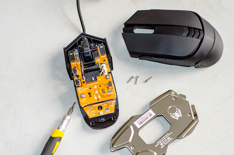 賤驢125M鼠標(biāo)的拆解還是十分便捷的,將底部三個(gè)螺絲拆掉后,將二面塑膠卡扣掰開(kāi)就可以將鼠標(biāo)主板取出。鼠標(biāo)主板搭載有原相3325芯片與歐姆龍2000萬(wàn)次微動(dòng)開(kāi)關(guān),如此經(jīng)典的設(shè)計(jì),保證了按鍵觸發(fā)力度與鼠標(biāo)連接的穩(wěn)定性。鼠標(biāo)中間的滾輪阻尼值很小,滾動(dòng)起來(lái)順滑、流暢,結(jié)合側(cè)鍵的合理搭配,可見(jiàn)其對(duì)于產(chǎn)品硬件方面的也是下了足夠的功夫、是真的用了心。