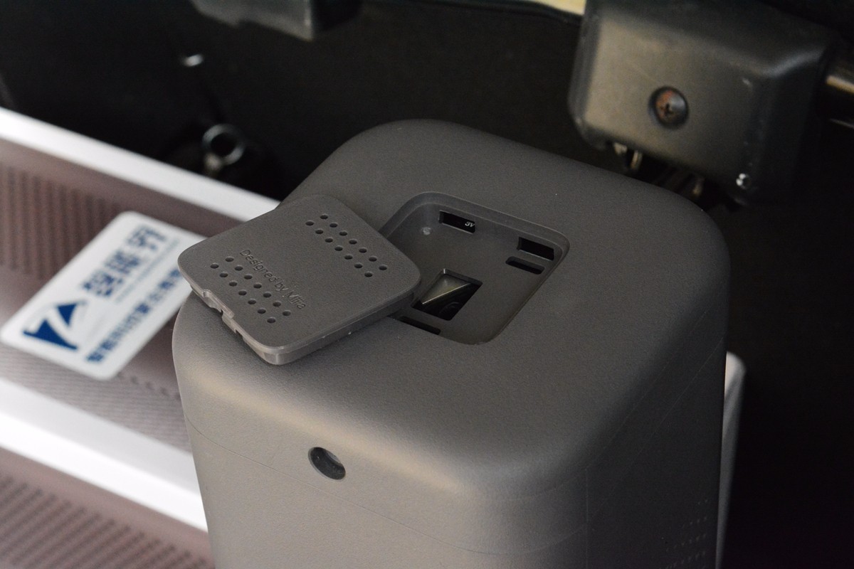 ▲車載空氣凈化器中間位置是置換濾芯,有個按鈕,直接按下即可輕松過拆開后蓋。