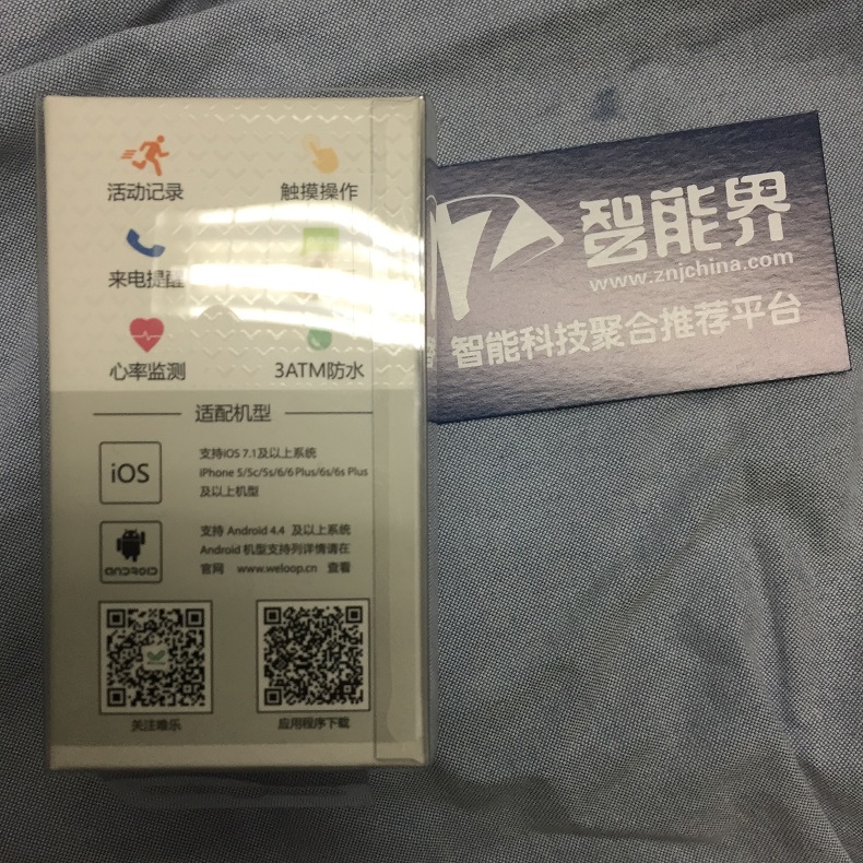 ▲手環(huán)包裝的最外層是一個(gè)紙盒,側(cè)面有公司的標(biāo)志“WeLoop”。