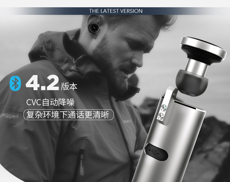 藍牙耳機整體如同一個超大號的耳釘。采用Rubber入耳方式,增加了耳機在耳道內(nèi)的摩擦力,不易脫落。實際佩戴過程中,即使搖頭晃腦也不會掉下來。