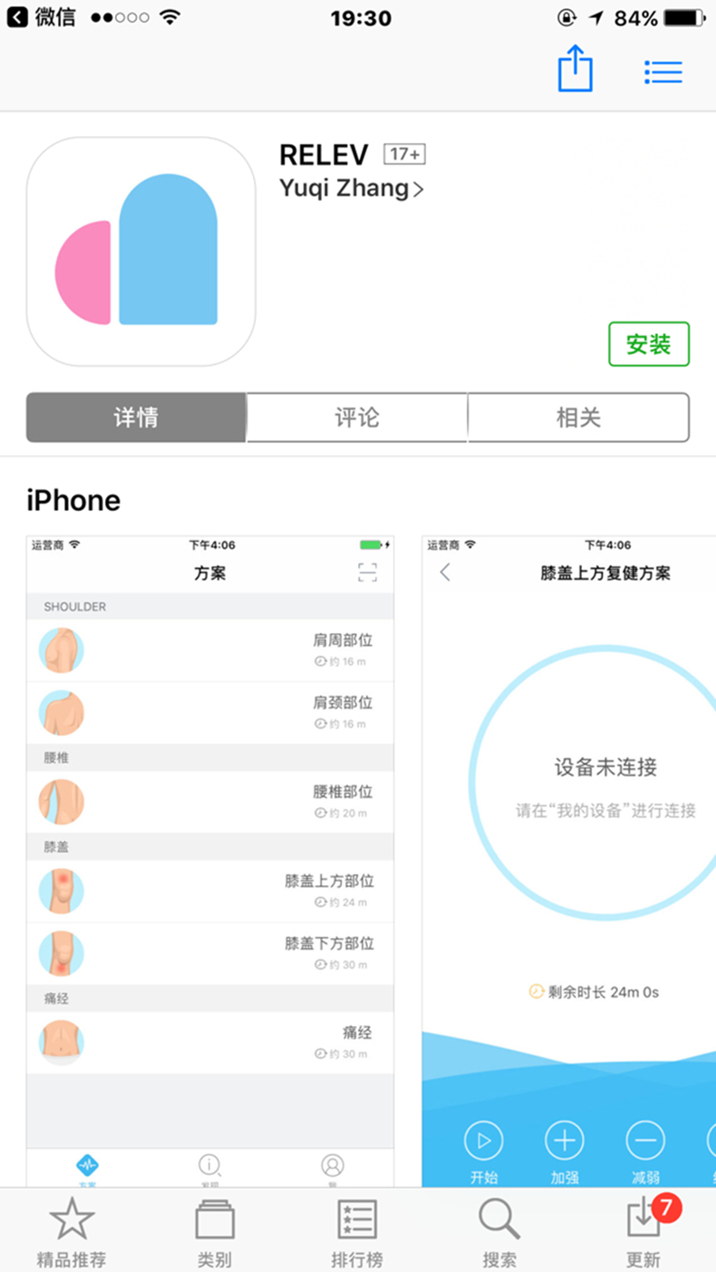 悅立電脈沖復(fù)健儀取消了容易誤操作的物理開關(guān),加強手機控制,所以使用悅立電脈沖復(fù)健儀,必須下載配套APP‘RELEV’。