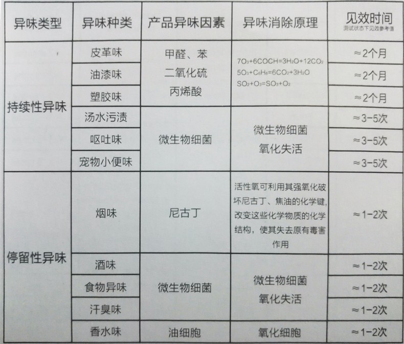 我們可以看出持續(xù)性異味(大部分來自車內(nèi)裝潢等)需要至少2個(gè)月左右時(shí)間才會(huì)見效,而對(duì)于停留性異味(大部分人為造成的)只需使用除味器1-2次即可??梢?,車內(nèi)除味過程是一個(gè)持久戰(zhàn)。