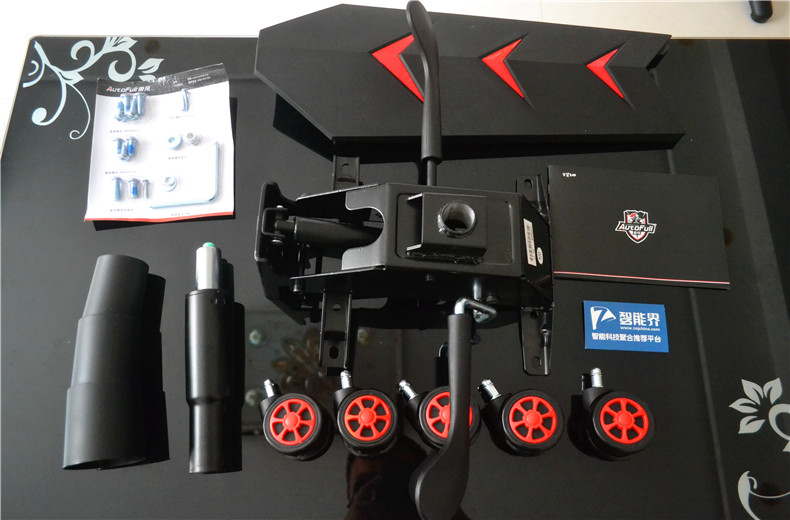 打開箱子,將椅子的各個(gè)部件小心取出,一定要小心,每個(gè)部件都很重!為了避免損傷地板,傲風(fēng)為我們府送來一塊超大泡沫板,可以平鋪在地面,依次取出配件,準(zhǔn)備安裝!先拿到安裝說明書,按照說明書步驟安裝,其實(shí)非常簡單,在接下來,我們邊安裝邊來看看這款電競椅的各配件外觀與做工。