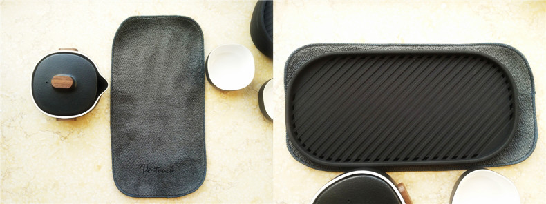 長(zhǎng)方形的小毛巾,比茶盒略大,可直接把茶盒放置在這條毛巾上面。