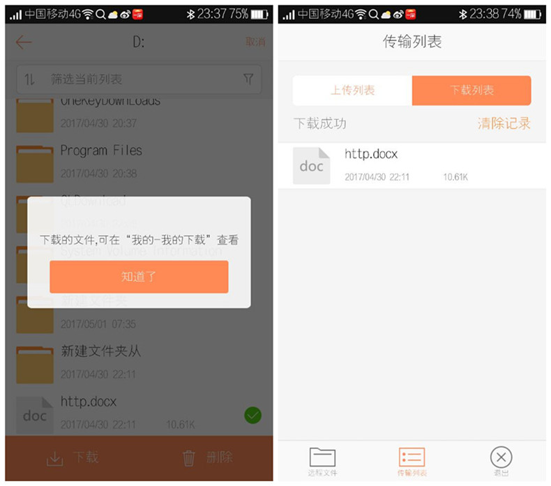 向日葵遠程控制器智能APP——設(shè)備——遠程文件:可以下載文件。