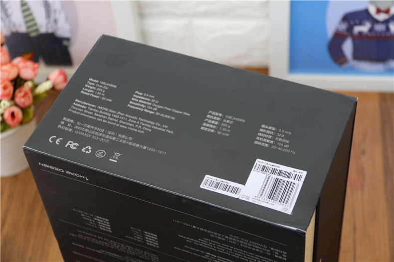 從包裝側(cè)面和背面均可以看到產(chǎn)品的各項(xiàng)參數(shù),產(chǎn)品型號是1MEJH0006,重量為293克,阻抗32Ω,靈敏度104dB,頻響范圍是20-40kHz。