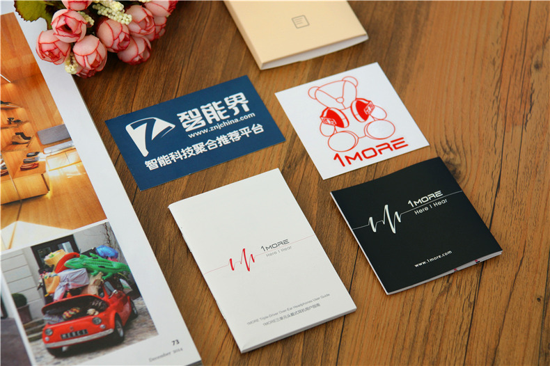而這個(gè)小紙盒主要是存放有產(chǎn)品的說明書、保修卡以及1MORE的小熊貼紙。
