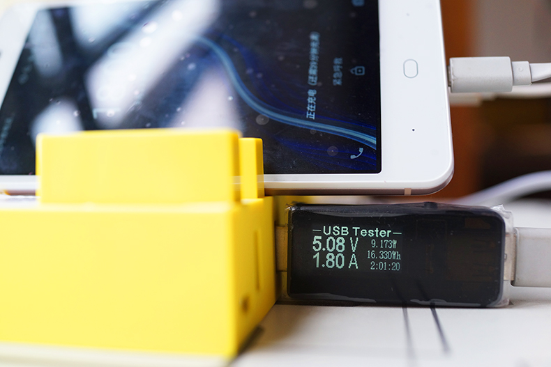 下面就插上電源線,來體驗一下這款咻玩鋼琴U站的實際表現(xiàn)吧。以下測試我采用了USB充電測試儀,用數(shù)字來說話也更有說服力。