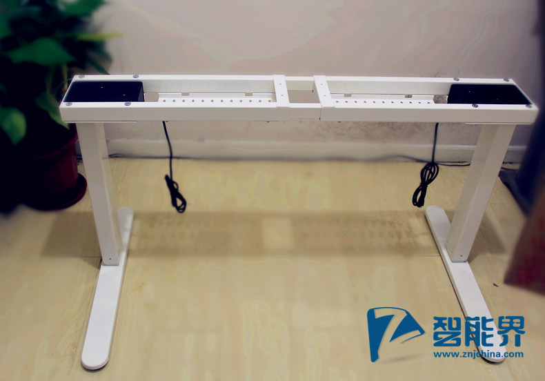 這些安裝好,骨架就穩(wěn)穩(wěn)當(dāng)當(dāng)?shù)恼玖⑵饋砹???刂坪蟹旁谑€板上,將各連接線鏈接到控制盒,一端是兩個桌腿電機連接線和控制器插口另一端是電源線插口。此時就可以把桌板取出來了。