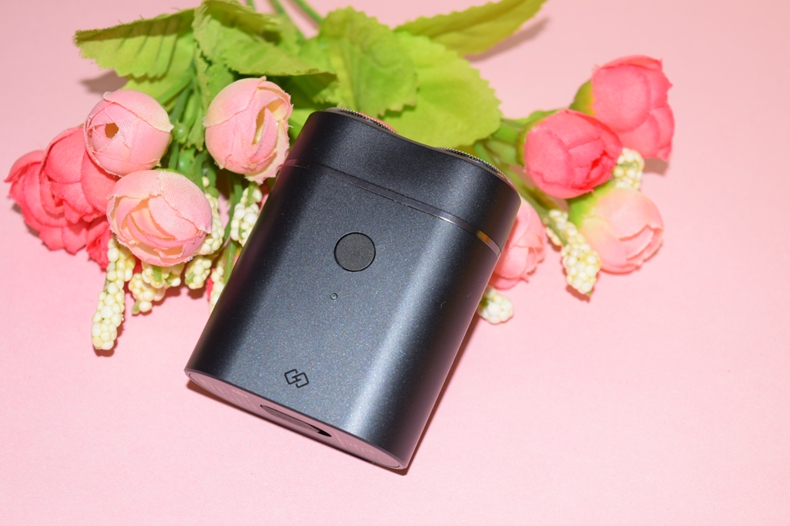 從側(cè)面可以看出煥醒便攜式剃須刀整體設(shè)計比較圓滑,表面采用星空黑,,磨砂拋光工藝,看上去很精致,拿在手中有著很細(xì)膩的感覺;