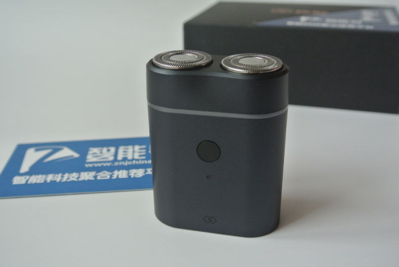 煥醒迷你剃須刀為主黑色,第一印象是精致小巧,入手手感很棒,其尺寸為50*25.5*63.5,僅重85.5g,握在手里比一個(gè)火柴盒大不了多少,外殼為塑料類材質(zhì),表面非常細(xì)膩,做工不錯(cuò),同時(shí)機(jī)身邊角經(jīng)過了圓潤弧度處理,入手的手感俱佳;其正面設(shè)置了唯一的實(shí)體圓形開關(guān)按鍵,開關(guān)鍵下方則是不起眼的狀態(tài)指示燈,最下部標(biāo)識(shí)有l(wèi)ogo。