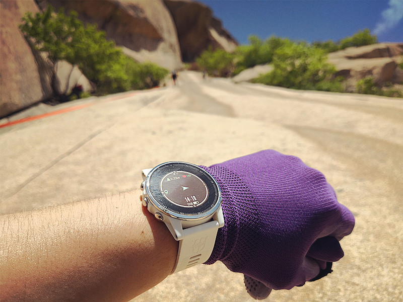 ▲行進(jìn)中隨時(shí)查看時(shí)間,心率,電量,高度。非常方便。就是這個(gè)白色,讓我在登山中有點(diǎn)縮手縮腳的感覺(jué),生怕把它弄不美了。