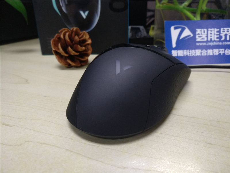 雷柏VT900后殼,磨砂外殼上一個(gè)“V”符號(hào)呼吸燈格外醒目。