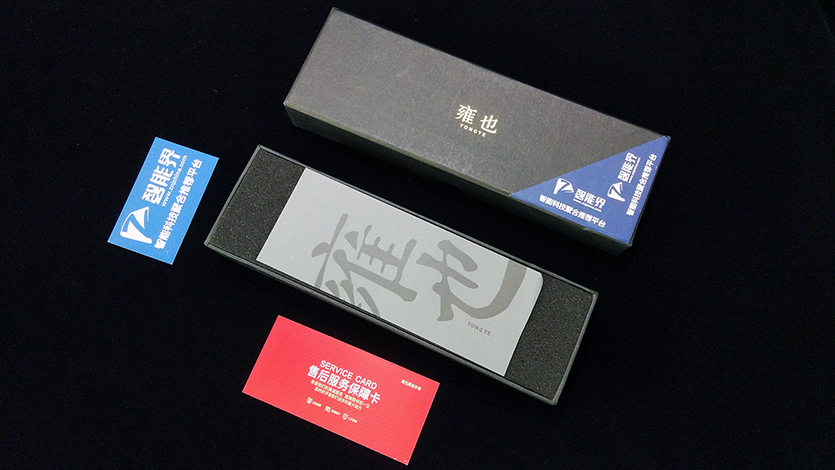 開蓋后首先看到的是一張紅色的保修卡,在它的底部還有一張玻璃紙做的裝飾,上面為毛筆字書寫的銘牌LOGO。