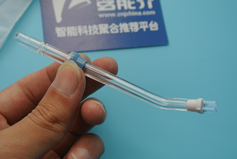 牙具共有7支顏色形狀不同的噴嘴,5種不同功能,滿足不同日常不同牙齒護(hù)理需求,同時(shí)也適用于家庭不同成員的需求,多個(gè)噴嘴顏色區(qū)分分離使用,也可保證家庭成員牙具使用健康衛(wèi)生,不過牙具收納于一個(gè)配件袋中,使用時(shí)不得不全部拆取,這樣對(duì)于暫時(shí)使用不上的噴嘴保持衛(wèi)生不利,建議噴嘴單獨(dú)封袋。