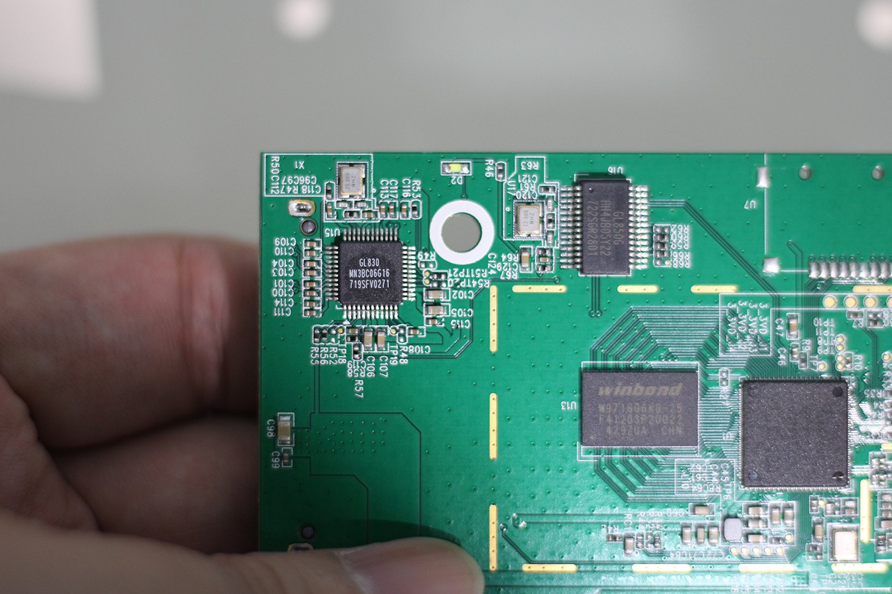 主板其中兩個(gè)芯處帶有銅片輔助散熱,一個(gè)是MT7688A MIPS 雙核處理器。另一個(gè)好像是USB TOSATA的控制芯片GL830.至于其它,內(nèi)行看門道吧。