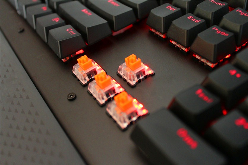 按鍵觸發(fā)的時候有清脆的“咔咔“聲也是機(jī)械鍵盤的一大特點,特殊的設(shè)計使得這款鍵盤的傳感效果更好,瞬間反應(yīng)明顯提高。