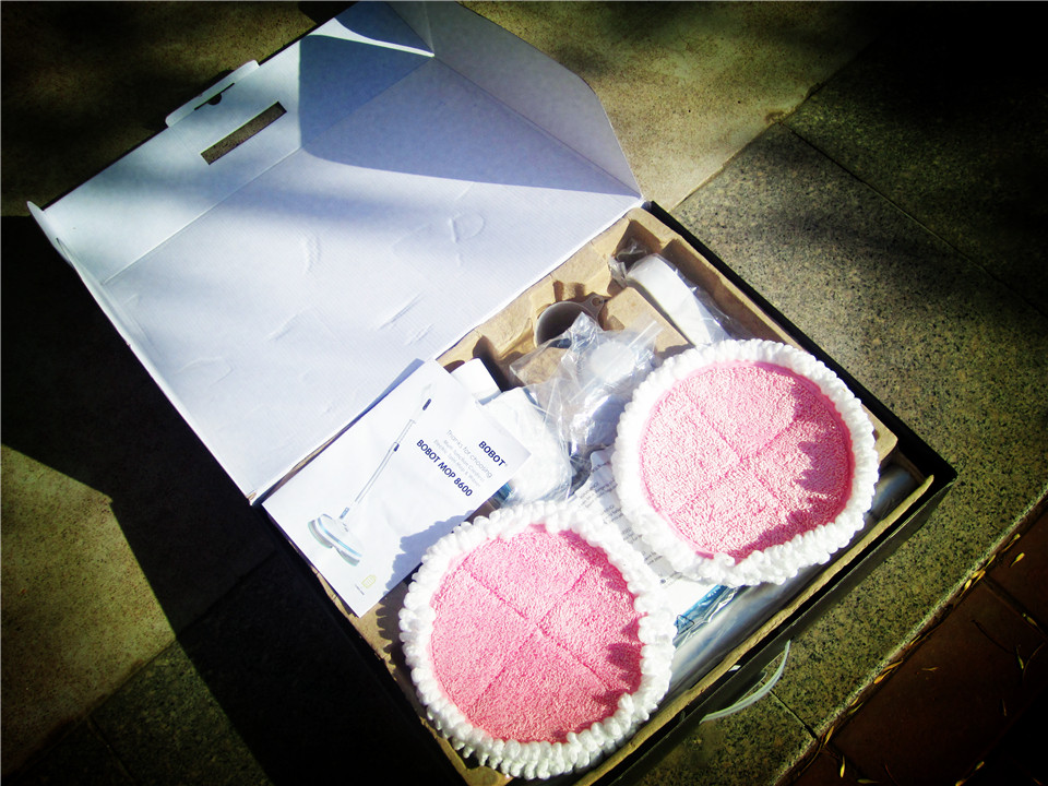 而打開(kāi)包裝首先看到的就兩張粉紅色大拖布了,實(shí)在太顯眼了:)我將盒中配件全部拿出,看看都有什么