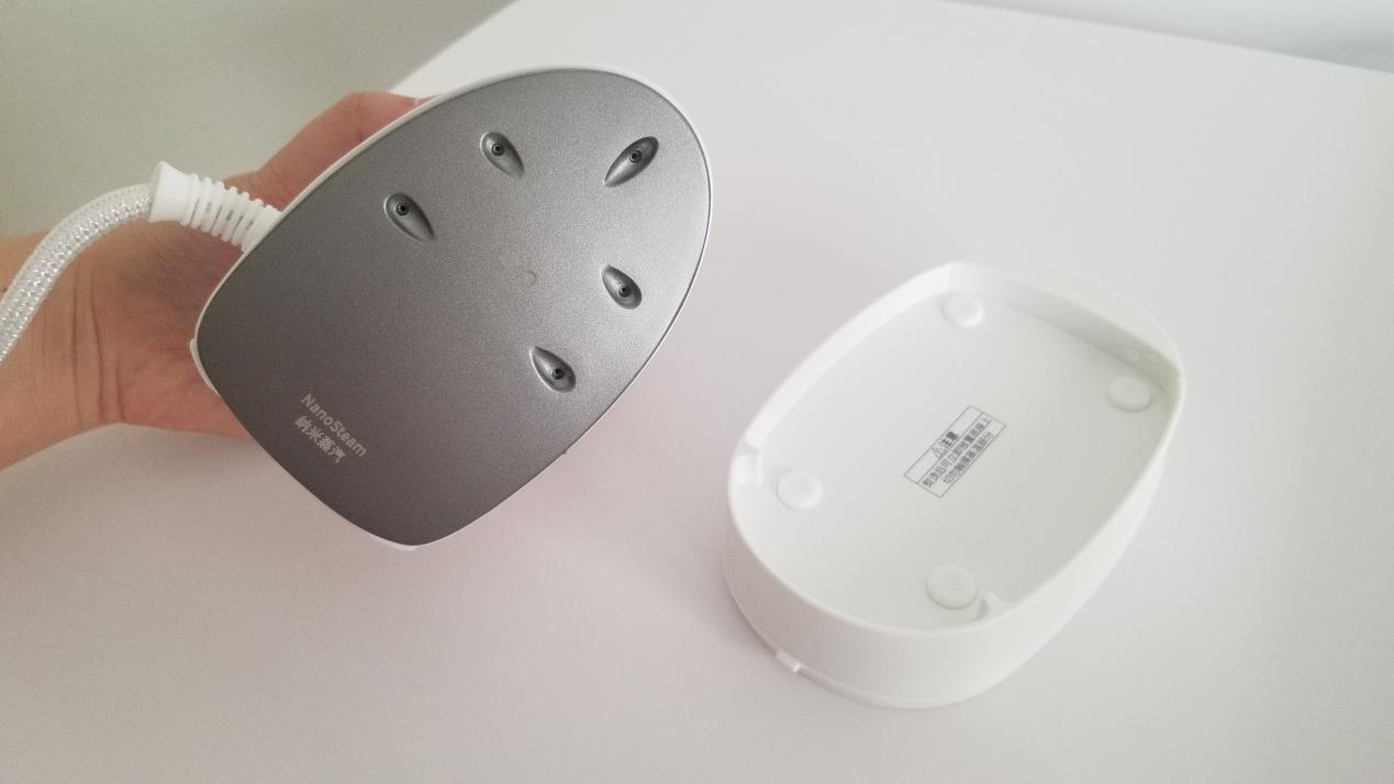 小熨斗的白色編織電源線和三腳插頭可以完整的放入其中,進一步減小了收納體積,更加方便攜帶。