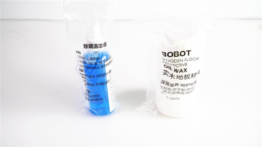 打開包裝盒,我們可以看到主機(jī)和其他配件,由于主機(jī)采用了易拆裝分體結(jié)構(gòu),所以顯得配件非常豐富,除電動(dòng)拖把主體外,還有無線遙控手柄、伸縮桿、可拆卸電池組、電源適配器、注水漏斗、打蠟液、除螨液、7號(hào)電池兩節(jié)、拖地布兩個(gè)、打蠟布兩個(gè)以及中英文說明書,可以說BOBOT的準(zhǔn)備非常的充分,不需要額外購買其他配件,當(dāng)然打蠟液、除螨液用完了還是要購買的。