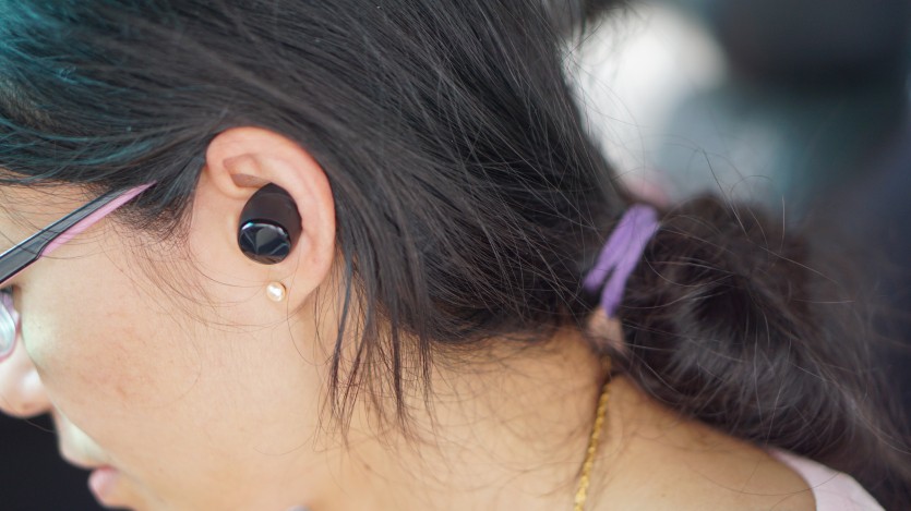 由于JEET AIR PLUS并沒有實(shí)體按鍵,所有的操作都需要通過敲擊來完成,而這塊大面積的扇形區(qū)域就是敲擊范圍了,連續(xù)敲擊任意耳機(jī)控制面板可以接聽和掛斷電話,連續(xù)敲擊兩次右耳控制音樂的播放和暫停,敲擊左耳則是激活語音控制。