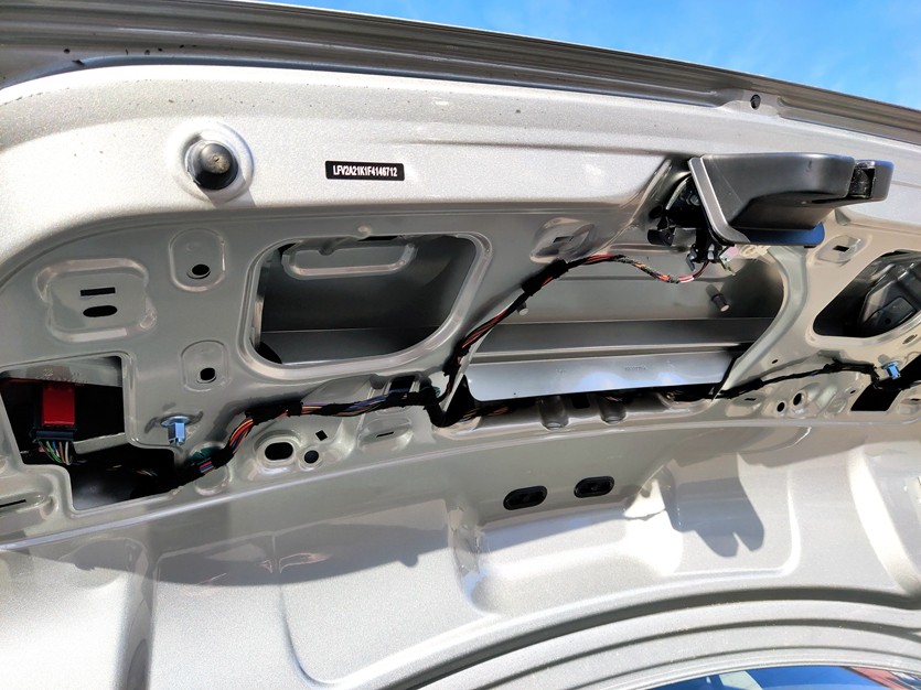 安裝方面,由于需要打孔,個人就找了個裝飾店進(jìn)行安裝,費(fèi)用大概80左右,難點(diǎn)主要在后置攝像頭的安裝。后攝要打孔安裝,聽了師傅的建議在后備箱的燈部分打孔并固定行車記錄儀,然后把倒車影像的線接入到后置鏡頭。師傅還比較專業(yè)的,把后備箱的內(nèi)飾拆下并認(rèn)真接線操作。