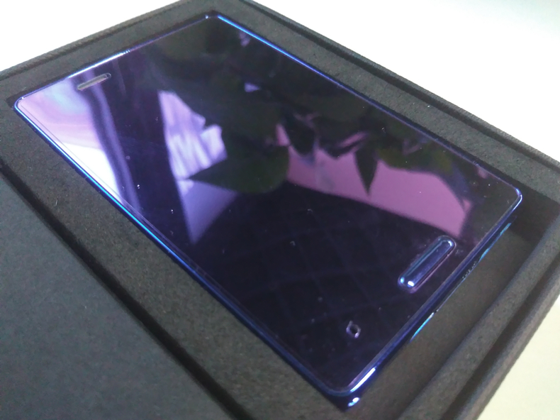 它就是Aiek M4智能卡片機。包裝相當?shù)牡驼{,采用黑色的紙盒包裝,沒有多余的修飾,很大方簡潔。拉開抽匣式的外皮,里面才是硬紙盒包裝。盒子側面的標簽上注明了產(chǎn)品的型號。旁邊藍色圓形貼紙表示這是一臺藍色的機器。