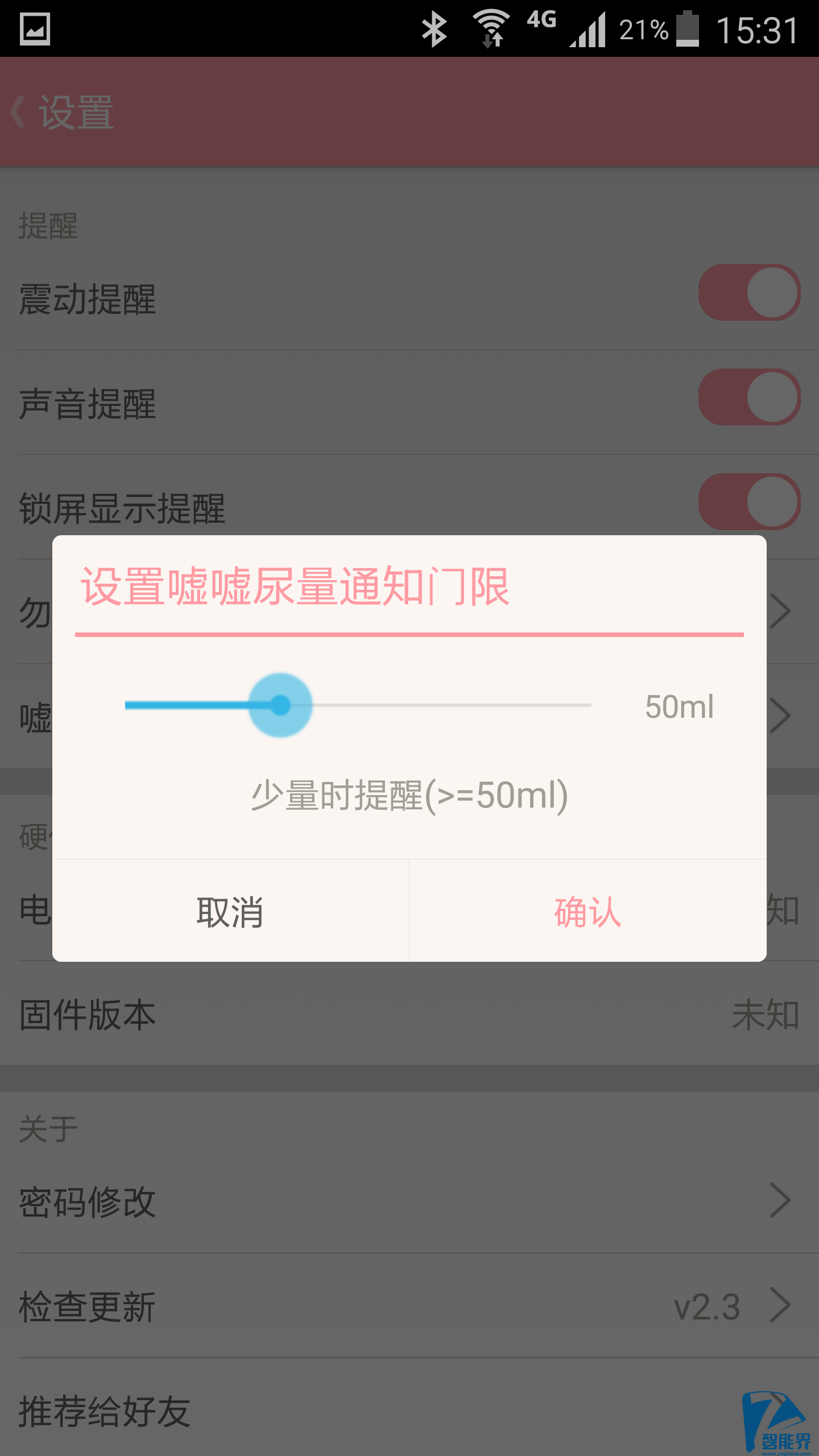 可設(shè)置噓噓尿量通知門限,0——150ml由您自己把控,有點像手機(jī)流量上限提醒的感覺。這個設(shè)置很貼心。