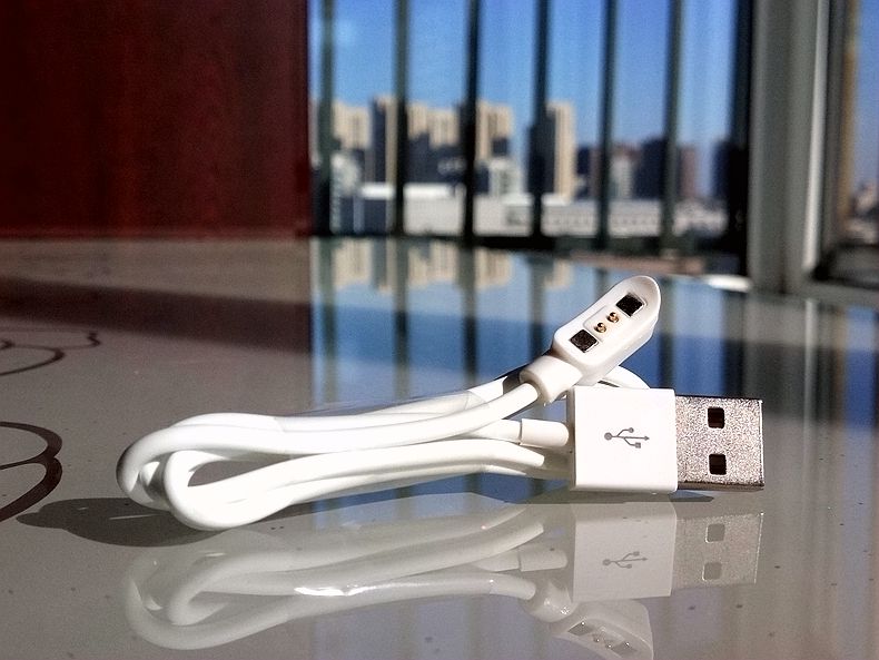 蛋卷手環(huán)采用的是磁吸式充電方式,在充電線與蛋卷手環(huán)相連的一端是弧形的,能夠很好的與蛋卷手環(huán)貼合進(jìn)行充電,而且充電線很柔軟。蛋卷手環(huán)的內(nèi)置電池容量為55mAh,i7手環(huán)的電池容量額外100mAh,雖然蛋卷手環(huán)的電池容量大約為i7手環(huán)的一半,也許是得益于屏幕材質(zhì)與顯示的方式不同,在續(xù)航方面蛋卷手環(huán)絲毫不遜于i7手環(huán),官方給出的續(xù)航時(shí)間都為5-7天。