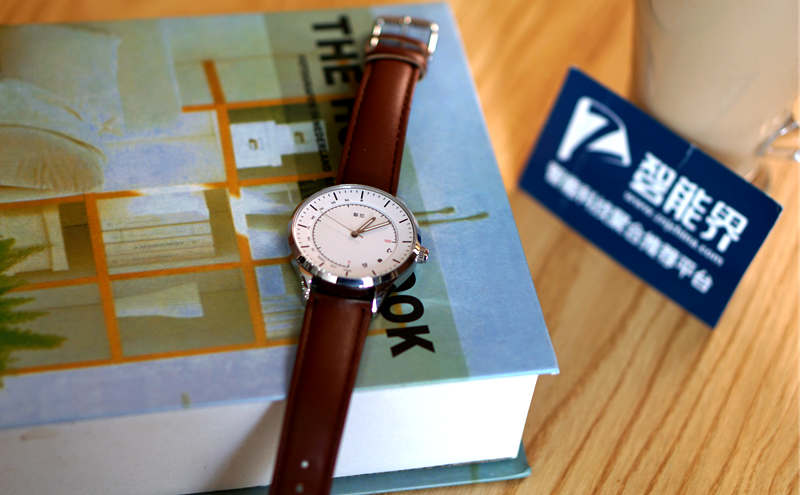 而在傳統(tǒng)之下卻又著一顆智能的‘芯’。表盤(pán)內(nèi)除正常的時(shí)間刻度之外,還印有3個(gè)圖標(biāo)和英文字母,3個(gè)圖標(biāo)分別代表來(lái)電、消息和鬧鐘,當(dāng)手機(jī)收到來(lái)電、消息或是啟動(dòng)鬧鐘時(shí),手表的秒針會(huì)立即指向?qū)?yīng)的圖標(biāo),同時(shí)手表震動(dòng),提醒我們查看。而表盤(pán)上英文分別是FIND一一查找手機(jī)、ACT一一查看運(yùn)動(dòng)完成指數(shù)(刻度0-100為運(yùn)動(dòng)指數(shù))、WEEK一一查看星期、SU-SA一一星期縮寫(xiě),可以通過(guò)按壓表身右側(cè)的旋鈕來(lái)操作。